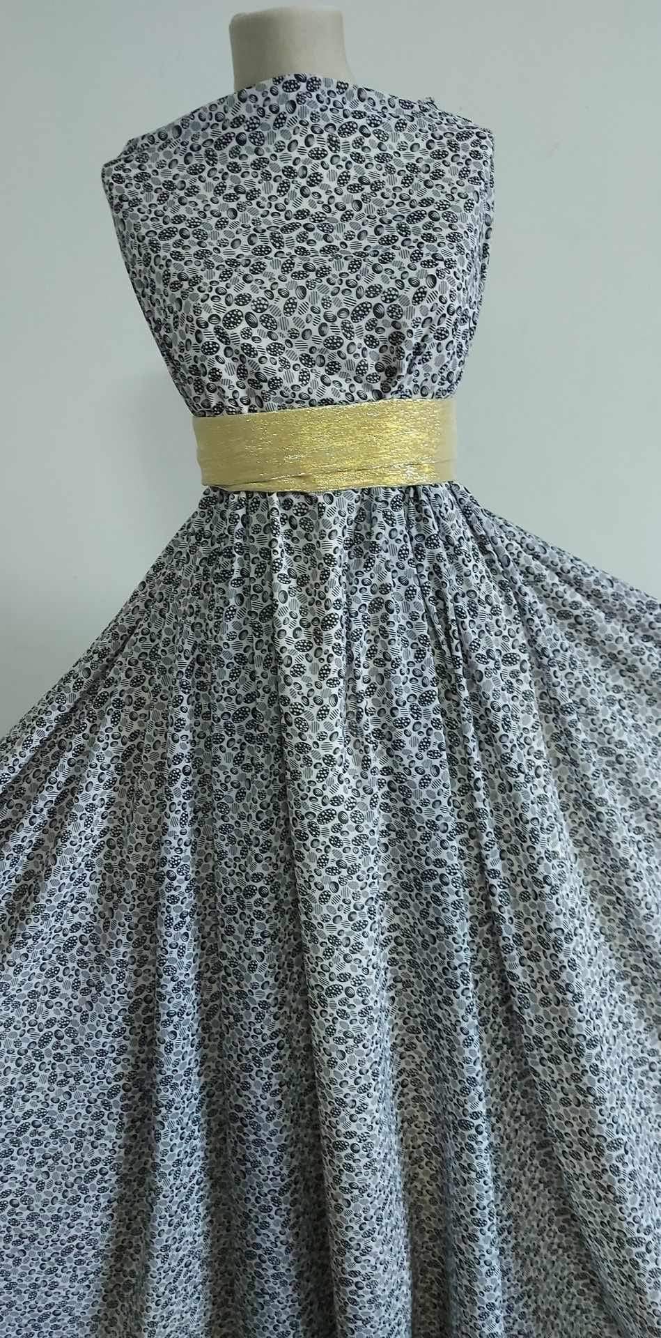 Voalul chiffon alb cu ovale negre este un material ușor și curgător, ideal pentru realizarea de piese vestimentare elegante și fluide. Datorită texturii sale fine și semi-transparente, acest voal este perfect pentru rochii, fuste, bluze, eșarfe sau chiar decorațiuni delicate. Modelul de ovale negre pe fundal alb adaugă un contrast subtil, oferind un aspect sofisticat și modern oricărui proiect de design.