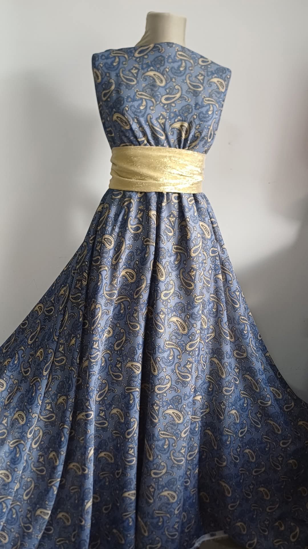 Un material delicat și rafinat, Voalul Chiffon în nuanță bleu este înfrumusețat cu un imprimeu paisley bej, clasic și elegant. Textura ușoară și fluidă îl face ideal pentru creații vestimentare vaporoase, iar combinația de culori adaugă un aer boem și sofisticat. Perfect pentru rochii feminine, fuste lejere, bluze cu personalitate, eșarfe diafane sau decoruri cu stil. O alegere superbă pentru piese care inspiră grație și bun gust.