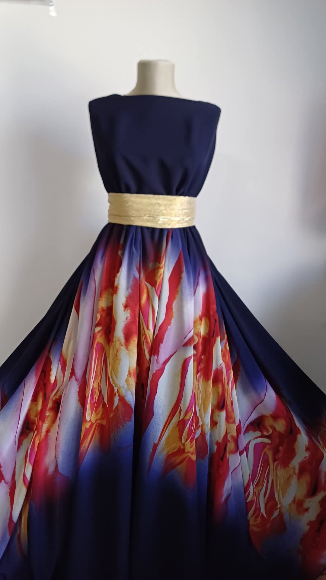 Voal chiffon bleumarin cu imprimeu Focul Viu, un material spectaculos ce îmbină eleganța culorii intense cu dinamismul modelului vibrant Potrivit pentru rochii fluide, fuste vaporoase, bluze lejere, eșarfe sofisticate sau decorațiuni pline de stilTextura ușoară și calitatea superioară oferă confort și rafinament, transformând orice creație într-o piesă cu personalitate și farmec aparte