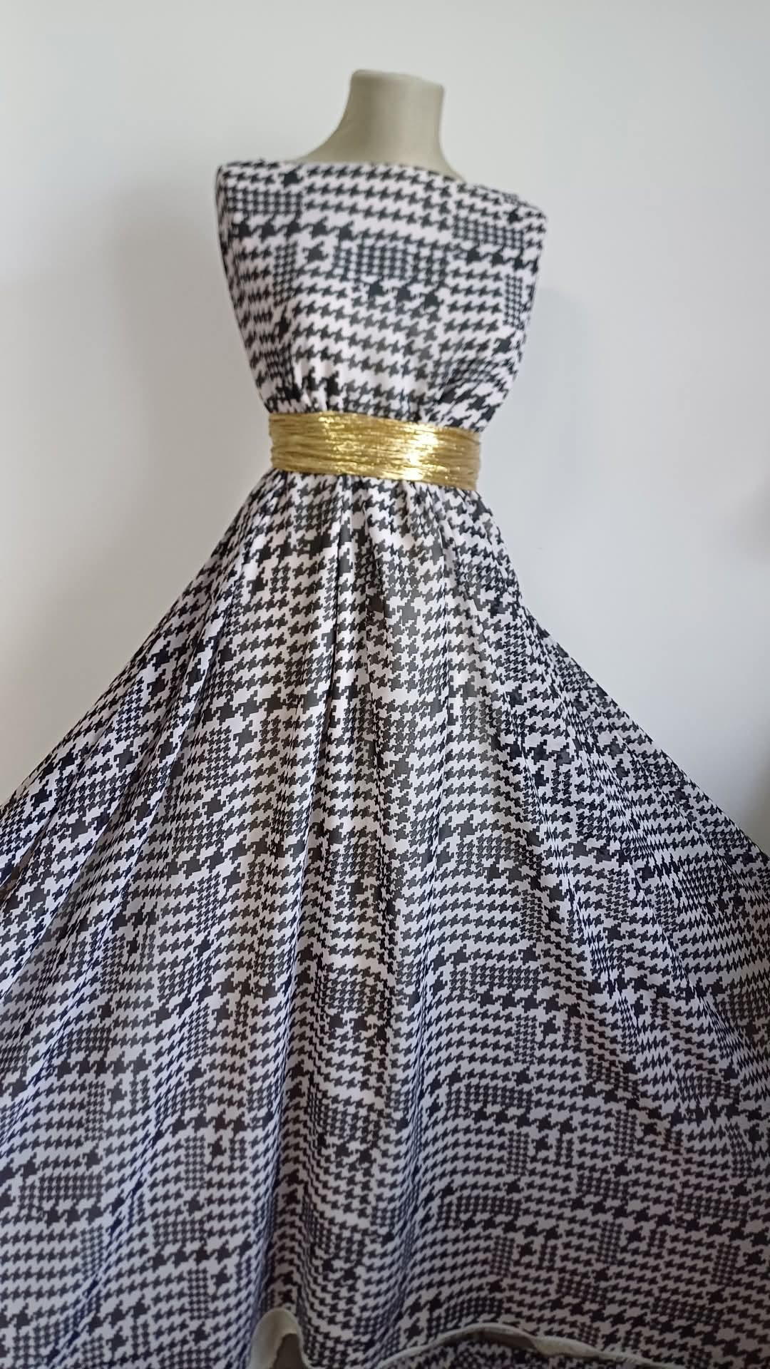 Rafinament și versatilitate într-un singur material! Acest voal chiffon cu imprimeu clasic picior de cocoș în alb și negru este alegerea perfectă pentru creații vestimentare deosebite: rochii lejere, fuste fluide, bluze vaporoase sau eșarfe elegante. Poate fi folosit și pentru decorațiuni spectaculoase, grație texturii sale fine și ușoare.