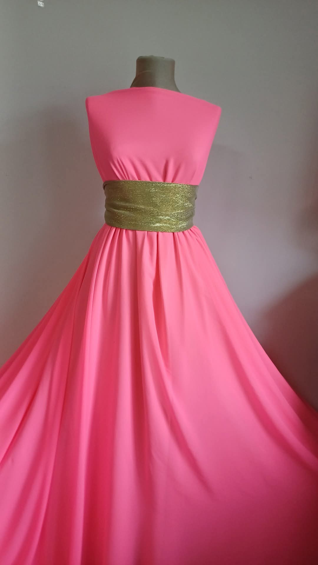 Un material diafan și vaporos, în nuanța jucăușă de roz bombon, perfect pentru creații feminine și romantice. Curgător și ușor, acest voal chifon se potrivește de minune pentru rochii elegante, fuste vaporoase, bluze fine, eșarfe delicate sau decorațiuni cu un aer boem. Ideal pentru ținute de vară, evenimente speciale sau accente decorative pline de farmec.