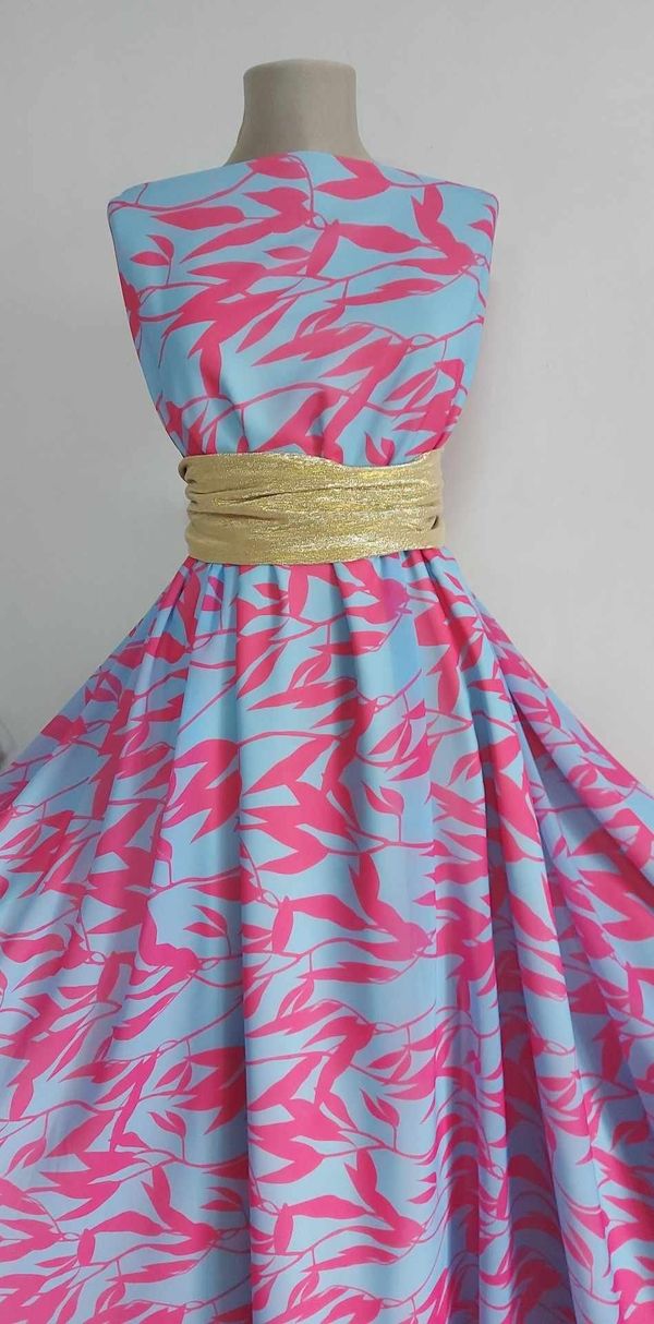Voalul imitație de mătase în nuanțe de bleo cu frunze fucsia este o alegere minunată pentru proiectele tale vestimentare. Iată câteva aspecte de luat în considerare: