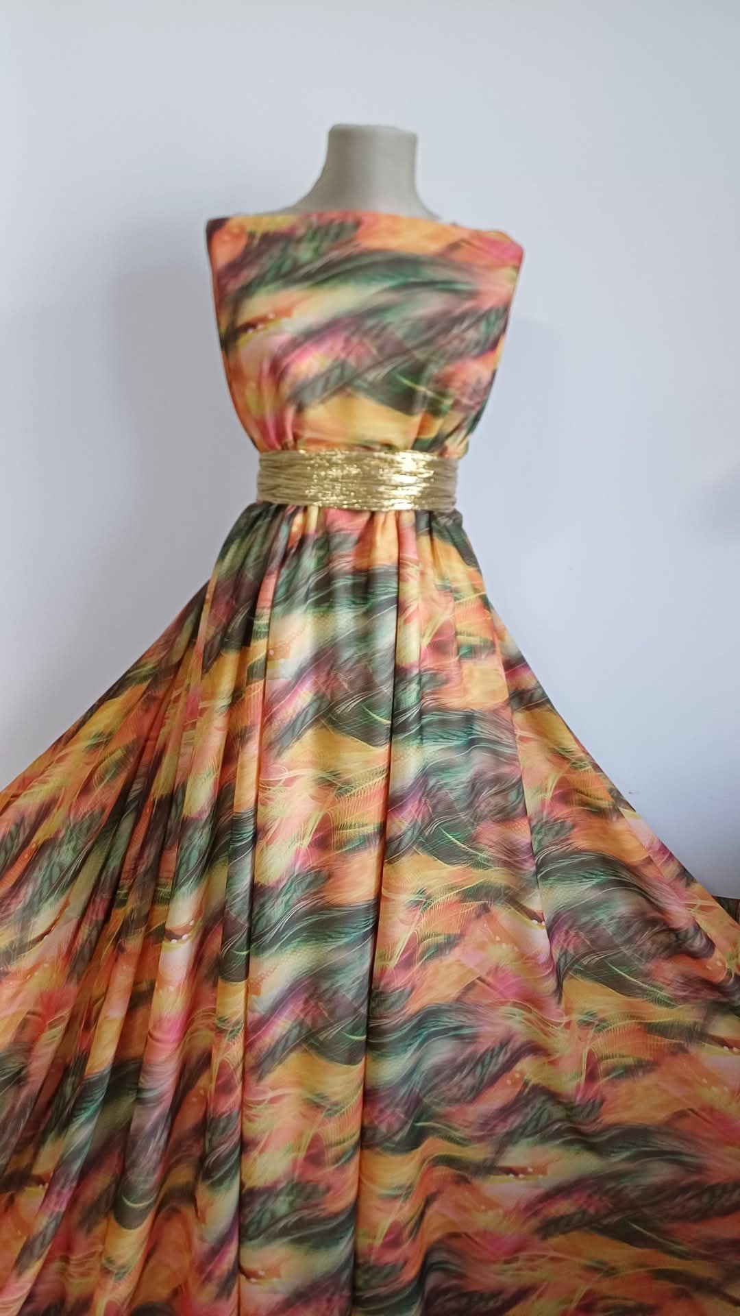 Surprinde esența verii în fiecare creație! Acest voal ușor, cu aspect de mătase și imprimeu vibrant Vara Fierbinte, aduce prospețime și culoare oricărui proiect vestimentar sau decorativ. Textura fină și calitatea deosebită îl fac ideal pentru rochii vaporoase, fuste lejere, bluze feminine, eșarfe chic sau decorațiuni estivale.