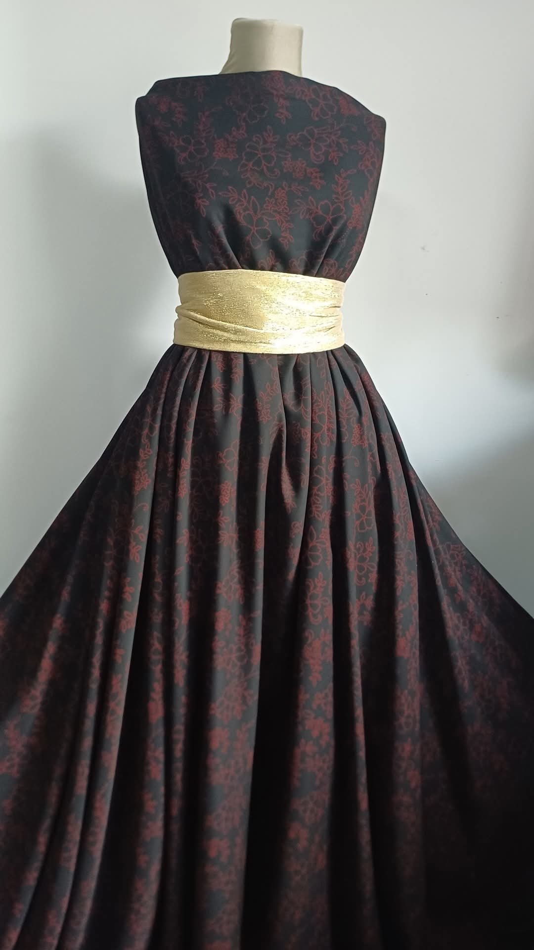 Un material cu o prezență elegantă și plină de farmec, Voalul Plin Negru este înfrumusețat de flori conturate în roșu intens, care adaugă profunzime și un strop de pasiune fiecărei creații. Datorită texturii sale dense și fine, acest voal cade frumos și oferă lejeritate în mișcare, fiind ideal pentru rochii fluide, fuste sofisticate, bluze feminine, eșarfe rafinate sau decorațiuni cu personalitate. Un material versatil și de efect, potrivit atât pentru ținute de zi, cât și pentru ocazii speciale.