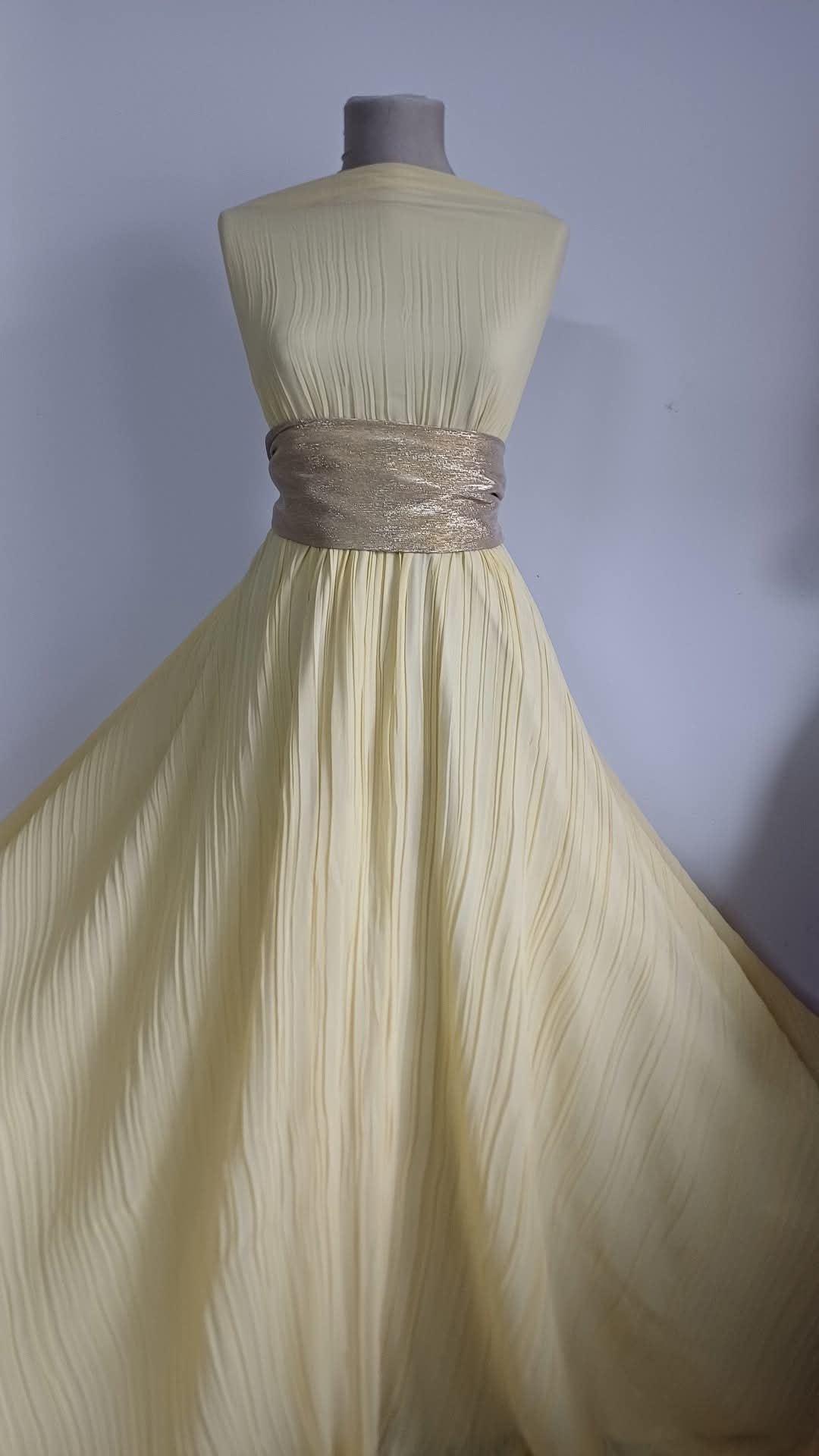 Voal Plisat Galben Deschis – un material diafan și elegant, cu pliseuri delicate care îi conferă mișcare și volum. Ideal pentru rochii, fuste, bluze, decorațiuni sau ținute spectaculoase pentru ședințe foto, aducând un aer luminos și rafinat fiecărei creații.